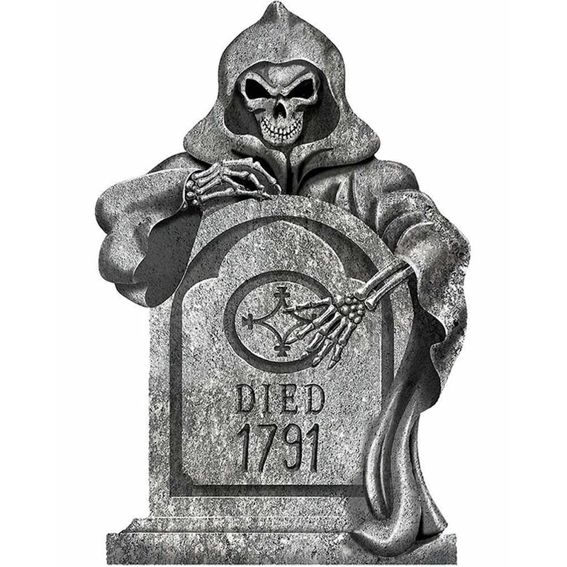 Item Includes:Tombstone.Stakes.Fit and Sizing:Measuring 56cm / 22in.Fabrics and Care:Styrofoam.Dead Rising!Create an eerie graveyard scene this Halloween with our Reaper Tombstone Styrofoam Decoration 56cm. The decoration features a tombstone with the engr