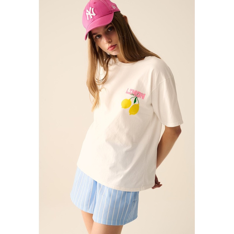 Refresh your casual wardrobe with this effortlessly chic white t-shirt, featuring a vibrant lemon print that brings a playful and refreshing touch to any outfit. Crafted in Italy from premium 100% cotton, this tee offers a luxuriously soft feel while ensuring breathability and all-day comfort. The bold citrus-inspired design appears on both the front and back, adding a fun and stylish flair to your everyday look.