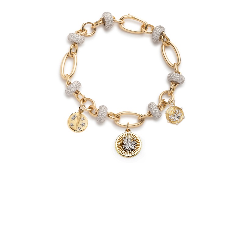 DescriptionHandcrafted in 18k Yellow and White Gold with Diamonds, our Resilience Orbit Bracelet Story represents our Resilience tenet: the ability to withstand adversity and keep going. With two Resilience medallions, this piece is a reminder that resilie