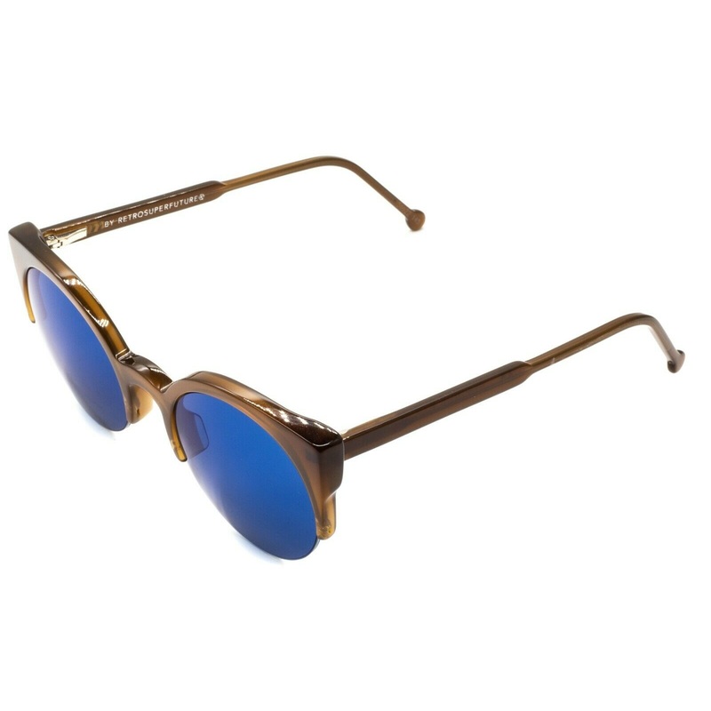 RETROSUPERFUTURE Half Rim Sunglasses - 100% AuthenticLUCIA DEEP BROWN D72Gloss brown acetate frames, hinges and arm endsBlue tinted lensesBrand newLens Width = 51mmFrame Height = 50mmBridge = 22mmTemple = 145mmMeasures 134mm across the front, edge to edgeS