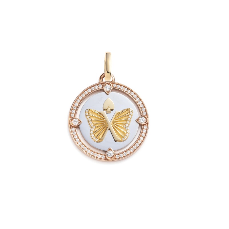 Reverie Large Specialty Medallion : in Tri-Color Gold with Diamonds and an Annex Link