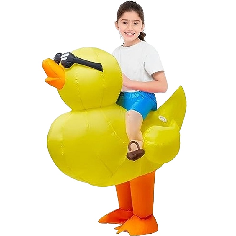 - Inflatable yellow rubber duck ride-on suit.
