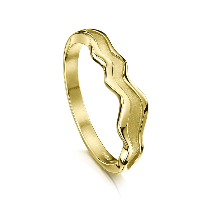 This River Ripples ring in luxurious 18ct yellow gold features a ripple shaped adorning the face of the ring, beautifully hand-finished in our Orkney workshop. The ring's width varies between 2-4mm.The elegant, free-flowing design of Sheilas River Ripples