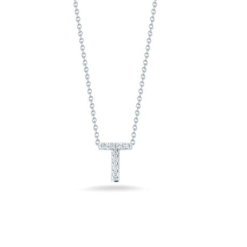 Roberto Coin 18K White Gold Tiny Treasures Diamond Love Letter "T" Necklace, D=.04ctw, 16/18"
