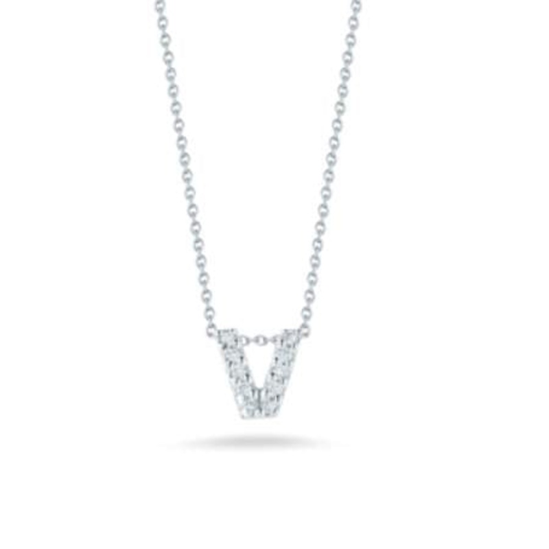 Roberto Coin 18K White Gold Tiny Treasures Diamond Love Letter “V” Necklace, D=.05ctw, 16/18″