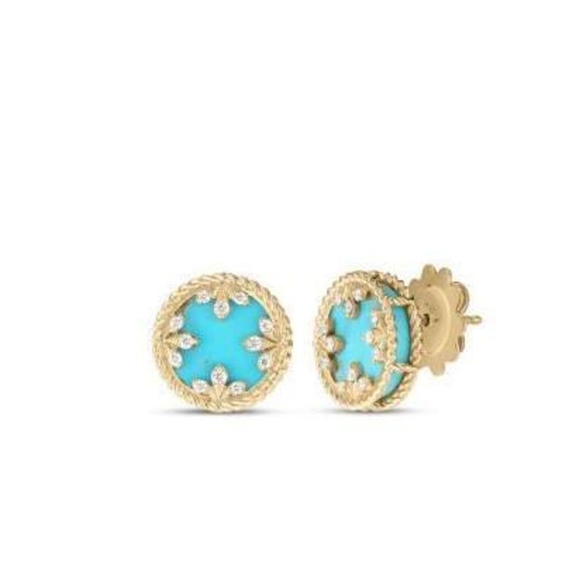 Roberto Coin 18K Yellow Gold Venetian Medallions Small Diamond and Turquoise Stud Earrings, Diamonds=~0.10CTW, 12mm