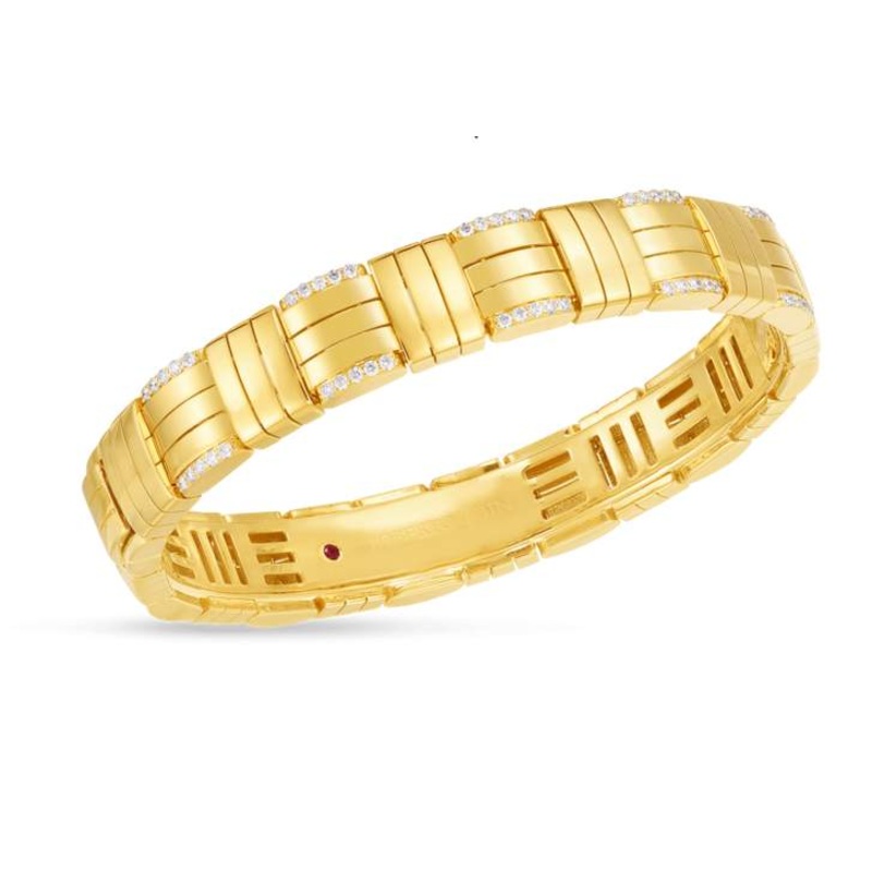Roberto Coin 18k Yellow Gold Veneto Woven Wide 48×58 Single Row Diamond Bangle D=0.42ctw