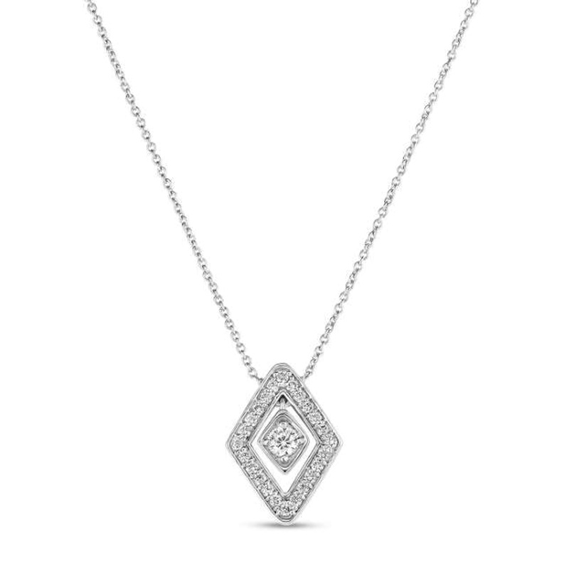 18 karat white gold Roberto Coin Diamante Small Pendant Necklace containing 0.27 carat total of diamonds.