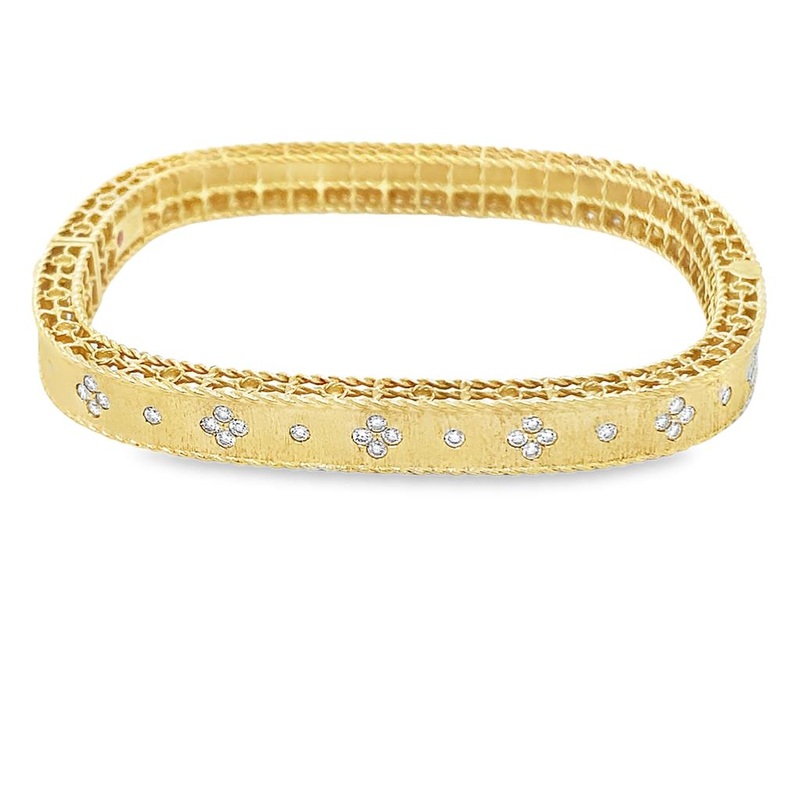 Yellow 18 Karat Satin Roberto Coin Princess Flower Bangle Estate Jewelry With 36 = 0.48Tw Round G/H Vs2 Diamonds Gram Weight: 18.8Jewelry Type: Diamond Fashion