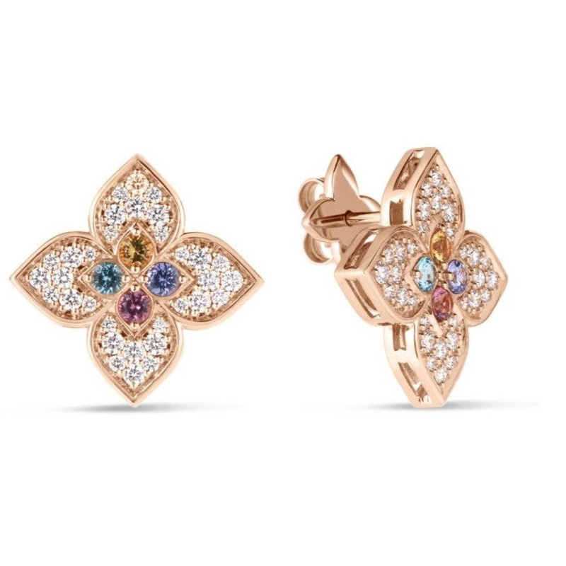 18K Yellow Gold Roberto Coin Venetian Princess Earring With Blue Topaz .10CTS, Citrine .08CTS, 2 Ruby .10CT – .02ct, Tanzanite .10CTS And Diamonds .75CTS