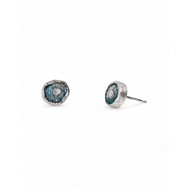 The Roman Glass Round Stud Earrings (8mm) are handmade with precision and care. The rough surface on both theroman glass andthe silvergive these earstuds a distinct and natural ‘found’ look.