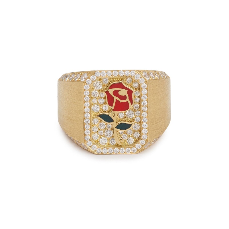 TheRose Antique Ring is made in France from 18 carat yellow gold. It features a red rose surrounded by white laboratory-grown diamonds on the flat bezel.Part of MYSTERYJOY'sUnreal Forest Collection, celebrating the rose, which has fascinated people since t