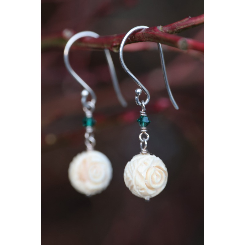 Woolly Mammoth Ivory, Swarovski Crystal & .925 Sterling SilverRose Bead Size - 10mm