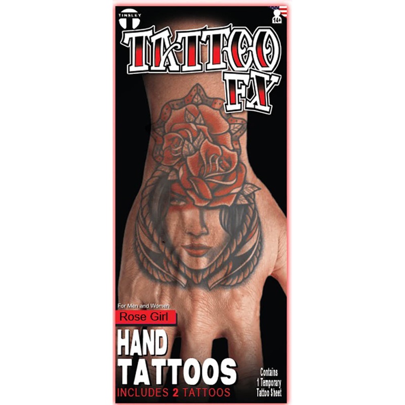 Item Includes:2x Temporary Tattoos.Features:Rose girl temporary tattoo.Realistic design.Please note: Skin must be clean and free of any makeup, dirt or oils. Apply with water. For hygienic reasons, this item is not able to be returned once the packaging ha