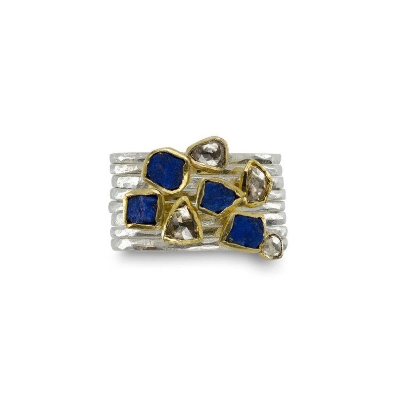 Versatile Options: The Rough Cut Lapis Lazuli Stacking Ring Set is part of a collection that includes other rough stacking rings with gemstone options such as rough diamond, ruby, and black spinel. Explore the collection to add variety and create a customised set.