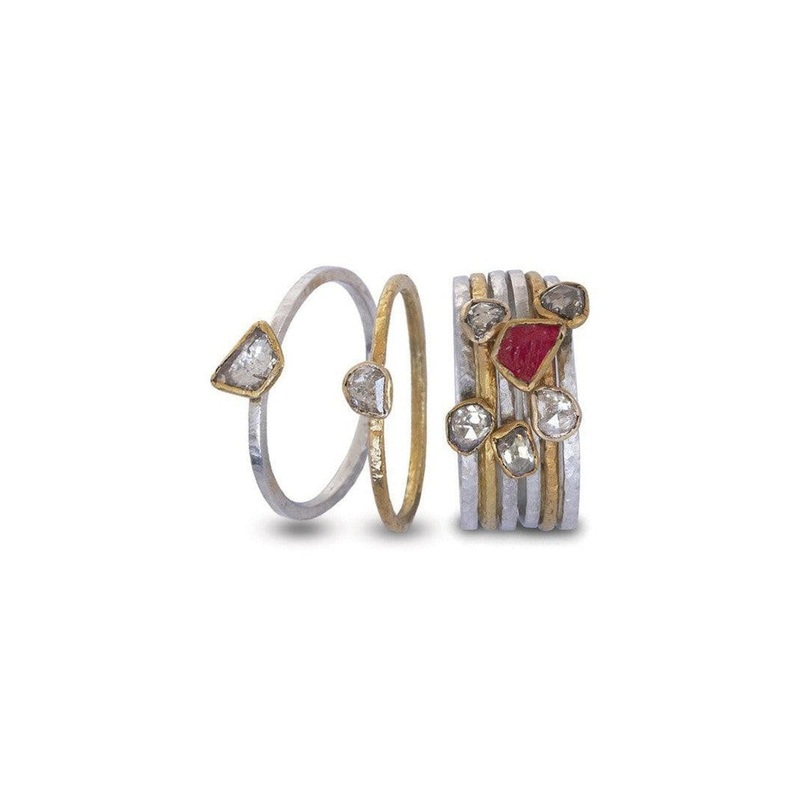 Mix and Match with Rough Diamonds:Mix and match your Rough Cut Ruby Stacking Ring Set with some rough diamond stacking rings.Here are some ideas that work well: