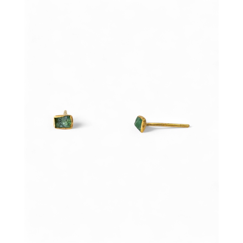 The Rough Emerald Stud Earrings (Small) are a unique addition to your jewellery collection. Each pair is one-of-a-kind, as the shapes of the emeralds will naturally vary.