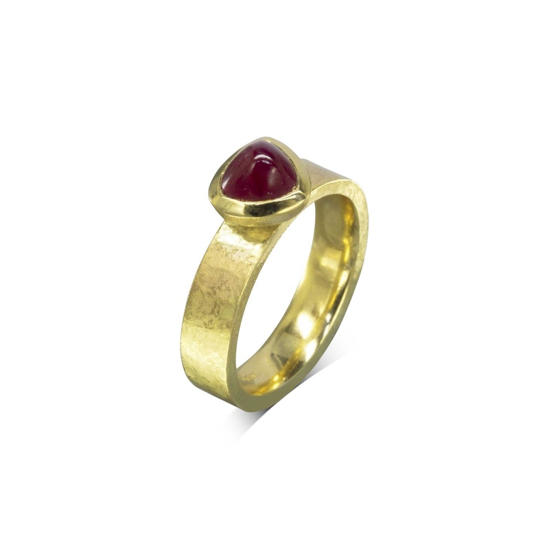 The Rough Hammered Ruby Anniversary Ring is available in 18ct yellow or rose gold, as well as platinum, allowing you to choose the metal that best suits your style.Handmade Craftsmanship: Handmadewith precision and care, this Rough Hammered Ruby Anniversar