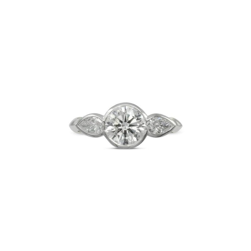 This Round Brilliant and Pear Shaped Diamond Trilogy Engagement Ring is a timeless and elegant piece that was commissioned in Christmas 2022.