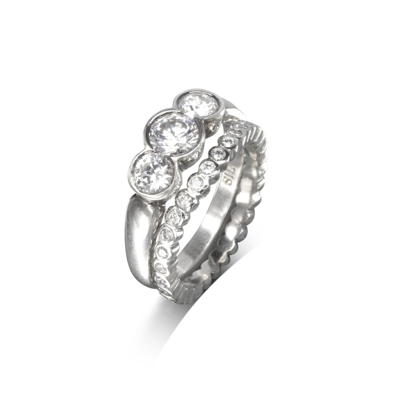 Round Brilliant Cut Diamond Platinum Trilogy Ring