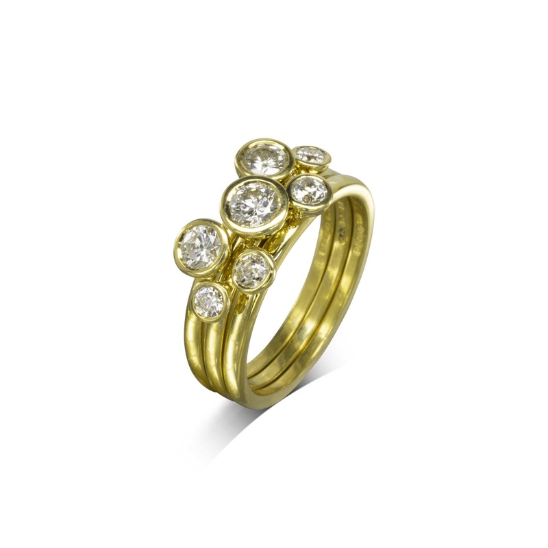 Versatile Wear: TheseClassic Round Brilliant Diamond Yellow Gold Stacking Rings (1ct)can be split into three separate pieces, giving you the flexibility to wear them individually or in various combinations, expressing your style and mood. They can also be joined on request.