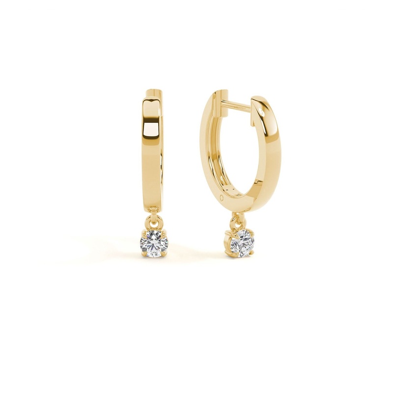 TheRound Charm Hoops aremade from recycled 9K yellow gold, and feature lab-grown white diamonds.Sacet suspended lab-grown diamond drops from their favourite smallhoop earrings for a dash of extra charm. Pared back and perfectly polished, the hinged hoops a