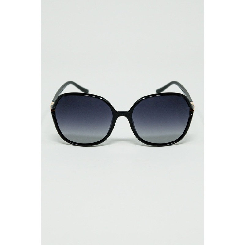 Round Sunglasses In Black With Gold Metal Detail