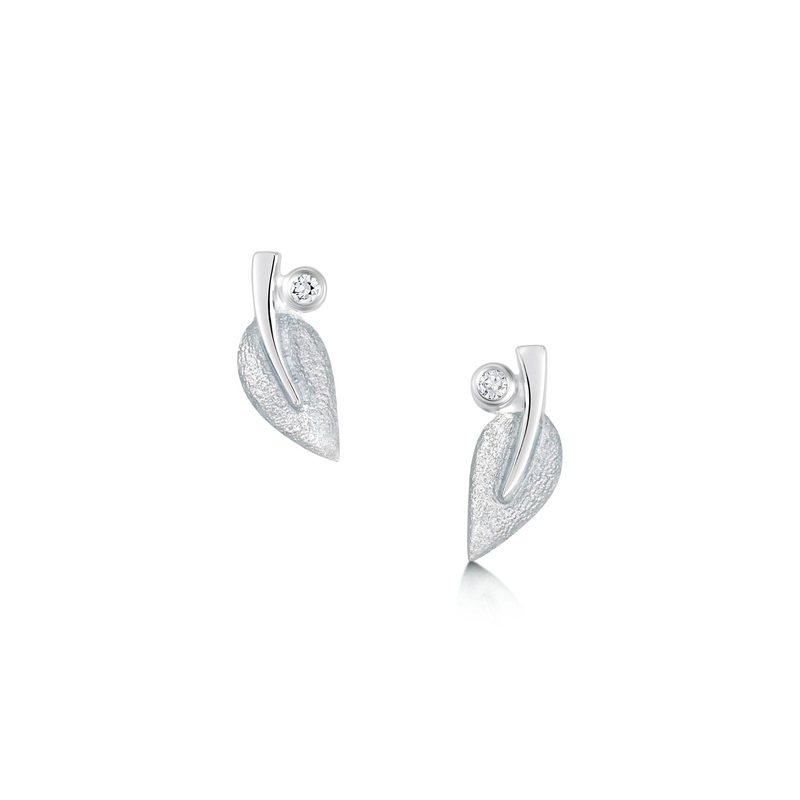 These small sterling silver Rowan Stud Earrings feature a single leaf in Frost enamel on a flowing silver branch. Each earring is beautifully enhanced with a cubic zirconia, set by hand in our Orkney Workshop.In Scottish lore, the Rowan tree is regarded as