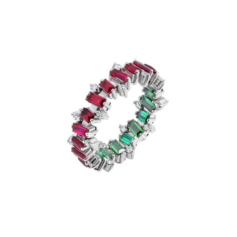Ruby, Emerald and White Sapphire Jagged Ring