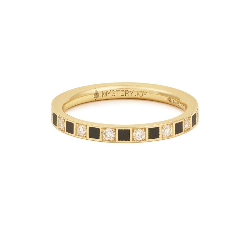 TheRve Ringis made in France from 18 carat yellow gold, featuring white laboratory-grown diamonds.Part of MYSTERYJOY'sGame Illusion Collection, which isinspired by mystery and chance, with jewellery taking on symbols such as playing cards or checker-boards