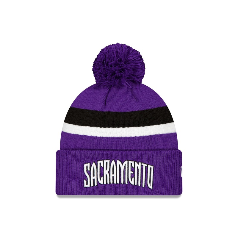 The Sacramento Kings Classic Edition Pom Knit features an embroidered Kings logo at the front cuff with the NBA Logoman at the rear and a one-time removable pom.