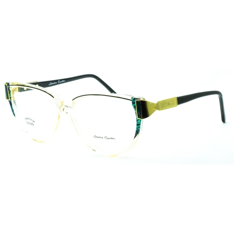 SANDRA GRUBER Vintage Full Rim Frames - 100% AuthenticXISTE 908Gloss transparent light yellow acetate framesPolished gold metal hinges and frame edges with marble green insertsGloss black acetate armsBrand new - Never been wornLens Width = 54mmFrame Height