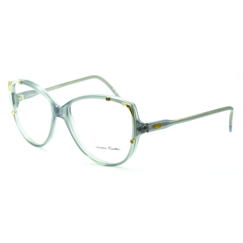 SANDRA GRUBER Vintage Full Rim Frames - 100% AuthenticXOES 703Gloss transparent pearl grey acetate frames and armsGold metal on white acetate stone set top frame edgesBrand new - Never been wornLens Width = 54mmFrame Height = 52mmBridge = 18mmTemple (Arm L