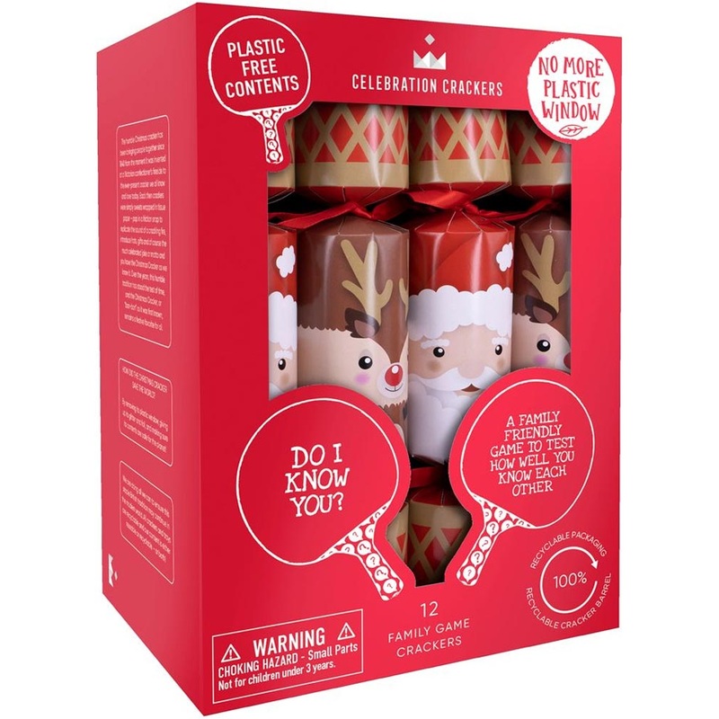 Item Includes:12 x Christmas crackers.Materials:100% recyclable packaging and cracker barrel.Plastic free contents.Please note: This item may contain small parts and is a potential choking hazard. It is recommended for ages 3+.A Christmas essential!Finish