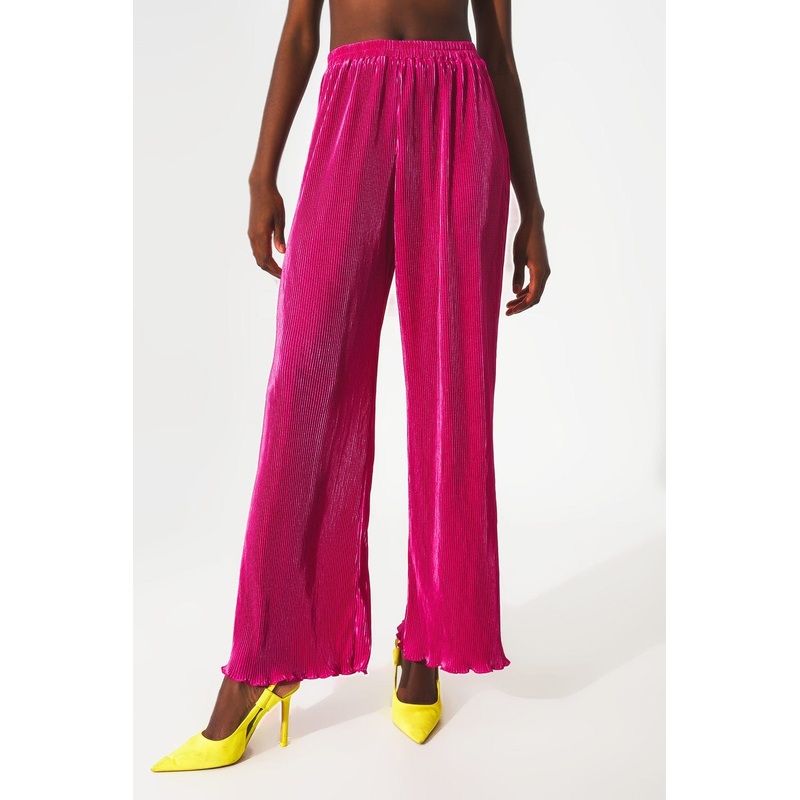 Length: Maxi length. Subcategory: Pants. Fit: Relaxed fit. Leg: Wide leg. Style: Party. Detail: Pleated design. Fabric: Satin . Waist: Elastic waist. runs true to size. S. 95% Polyester 5% Elastane