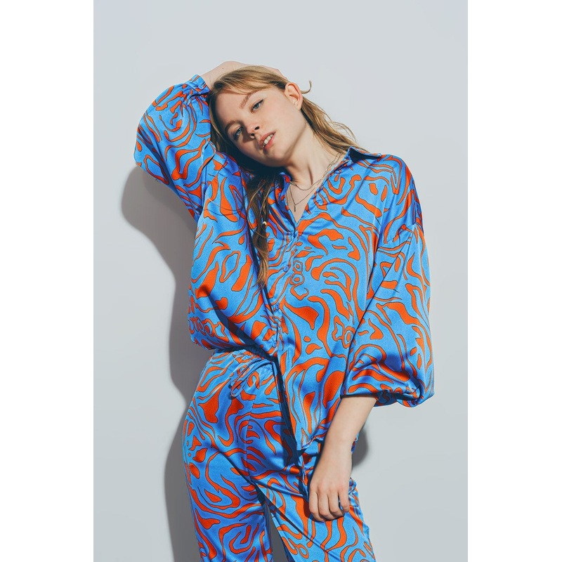 Length: Full length. Subcategory: Shirts. Neck: V-neck neckline. Sleeves: Puff sleeves. Print: Animal print. Fit: Relaxed fit. Style: Daily. Detail: Button cuffs. Fabric: Satin . Zipper: Button placket. runs true to size. S. 100% Polyester