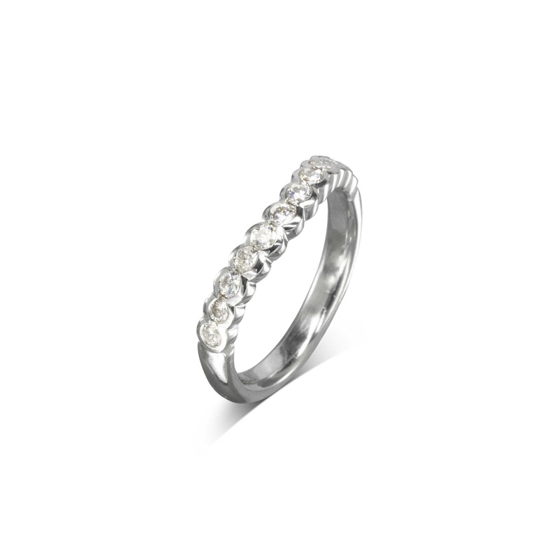 Diamond Brilliance: The band is set with approximately 12 x 2.2mm (0.05)ct diamonds, depending on your ring size. The total carat weight is 0.5cts.