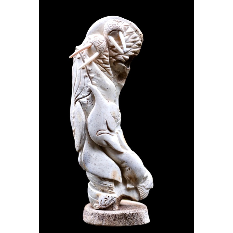 Carved from Fossil Walrus Jawbone-Tusks are fossil Ivory by Artist Aaron Barrett Size – 4 x 2 x 11 1/2 LxWxH*One of a kind*Can only be shipped within the USA