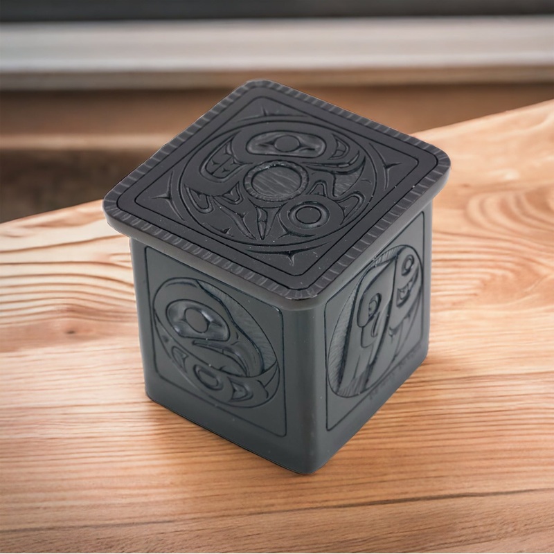 Recycled crushed marble Haida argillite reproduction sculpted boxSize - 2 1/4" square x 2 1/2" height
