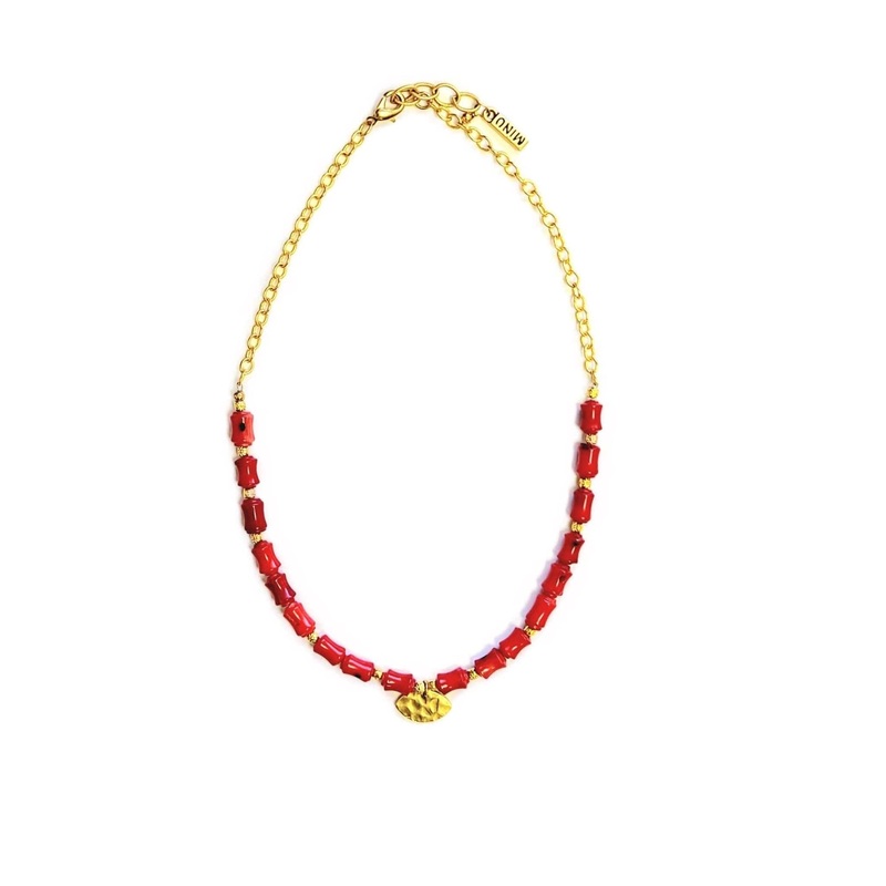 Red coral with gold plated accents. Lobster clasp closure.