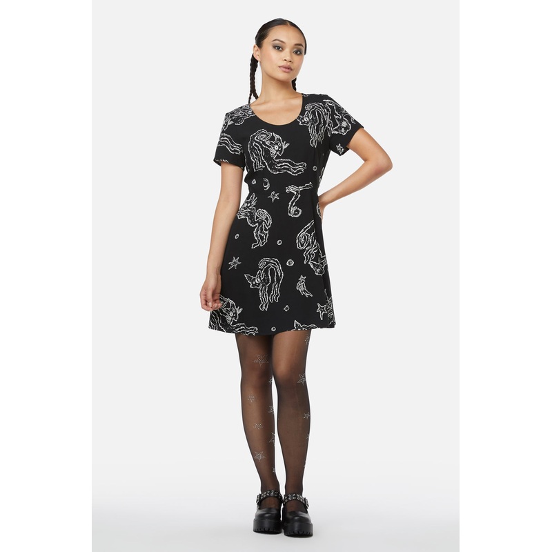 Graphic Dress-Features Shadows Repeat Print-Round Neckline-Has a Faux Button Front Detail-Skater Flared Style Skirt-Made From Viscose-Available In BlackProduct Code: BGFX131