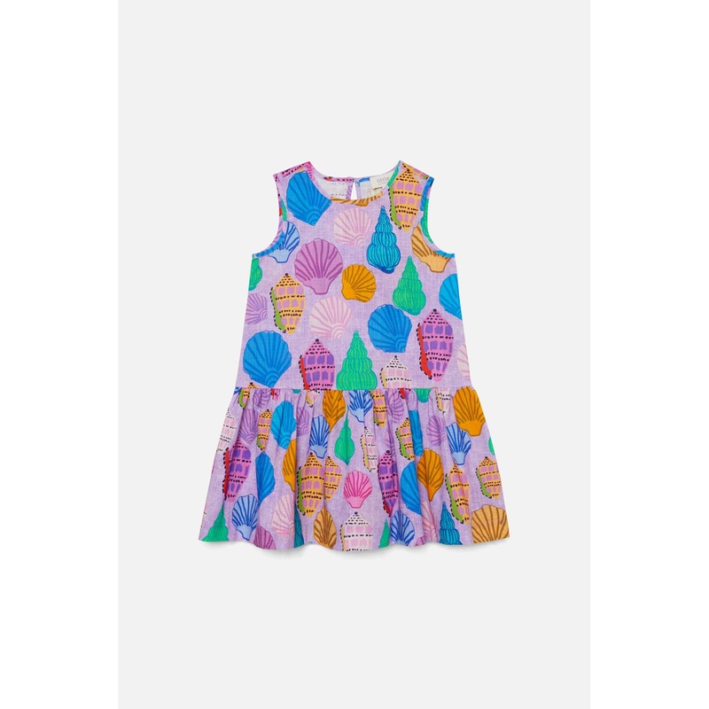 Printed textured cotton dress- soft textured cotton slubby quality- sleeveless- easy button back opening- drop waist seam with soft gathering- features exclusive princess highway kids printProduct Code: PKGY058
