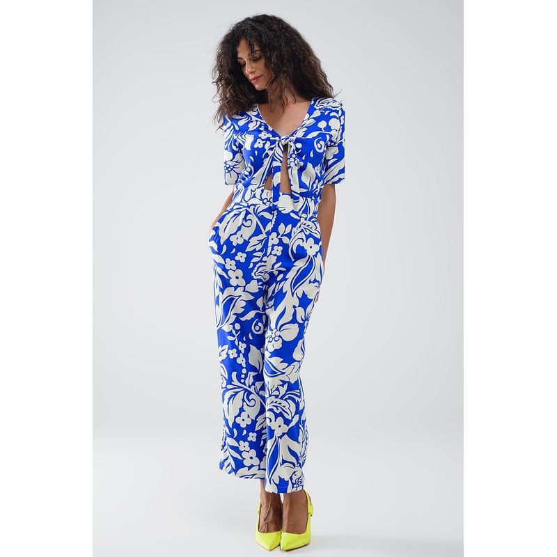 Introducing our Short Sleeve Key Hole Front Floral Jumpsuit in Blue, a stunning piece designed to bring effortless style to your summer wardrobe. This beautiful jumpsuit features a keyhole front with a tie detail, adding a touch of elegance to its relaxed