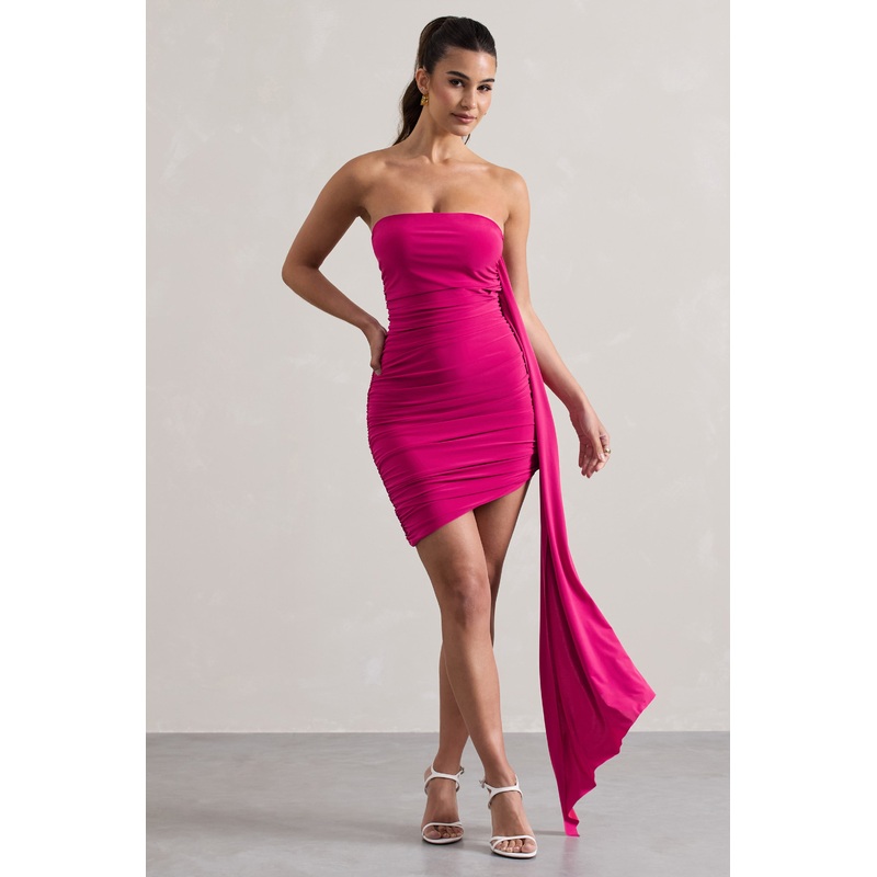 Siena | Hot Pink Ruched Asymmetric Mini Dress With Sash
