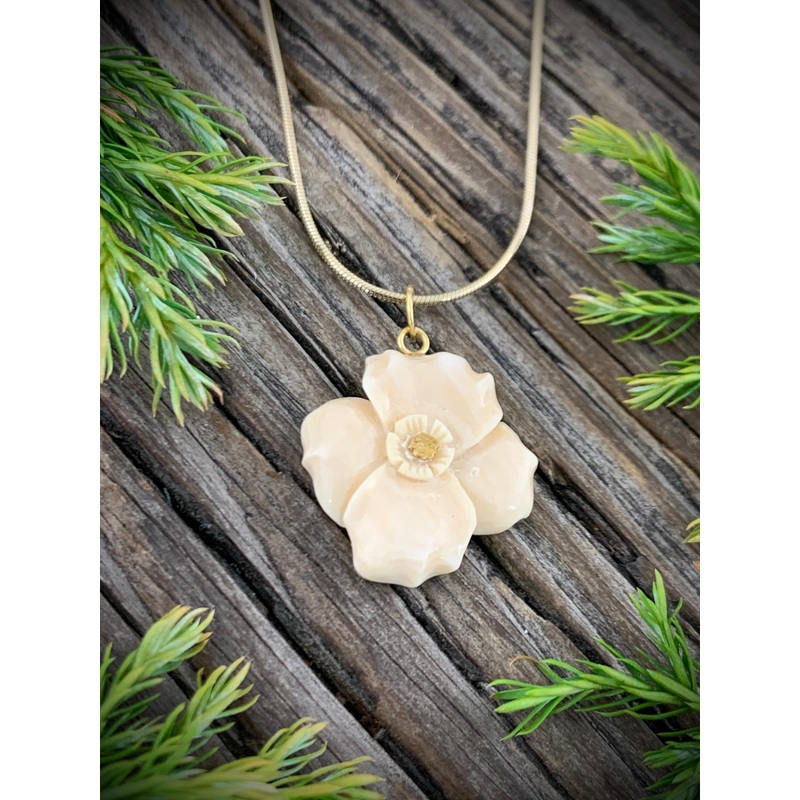 20mm size RoseWoolly Mammoth Ivory, Alaskan Gold Nugget & 14k GoldInformation card included *Gold plated chain IncludedCheck out the matching earrings...Click here