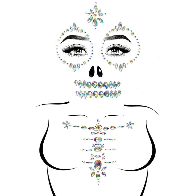 Skeleton Skull Adhesive Face and Chest Jewels Sticker
