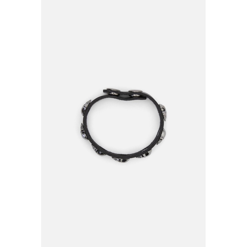 Skull Cuff- A cool and easy to wear accessory- Punk inspired- Vegan leather cuff- Skull shaped studs- Hardware silver in colour- Available in black- Press stud closure- Comes in sizes S and LProduct Code: BWFZ006