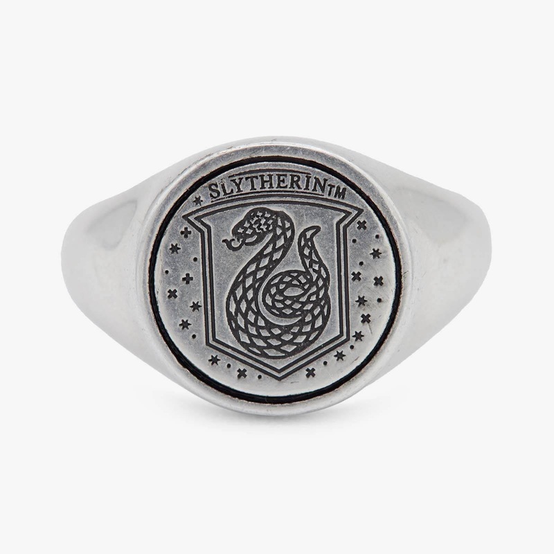 Were s-s-s-s-soooo into the Slytherin Signet Ring. This spellbinding silver style features an engraved Slytherin crest and the words ambition, pride, cunning etched on the inner band to truly capture the Slytherin spirit.For everyring sold, Pura Vida will
