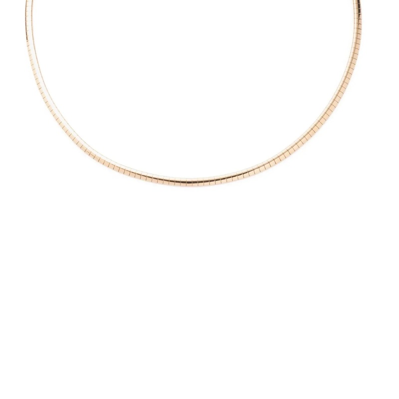 Handcrafted in 18k yellow gold, this Small Sleek Collar Chain Necklace is our newest layer. Master artisans created the elegantly flexible shape by wrapping individual metal plates around an inner mesh core and attaching each link closely together, so the necklace moves fluidly and molds beautifully around the neck. The skilled construction is reminiscent of an Omega chain with its seamless joining, but this form is more rounded, and can hold significant weight without losing its shape.
