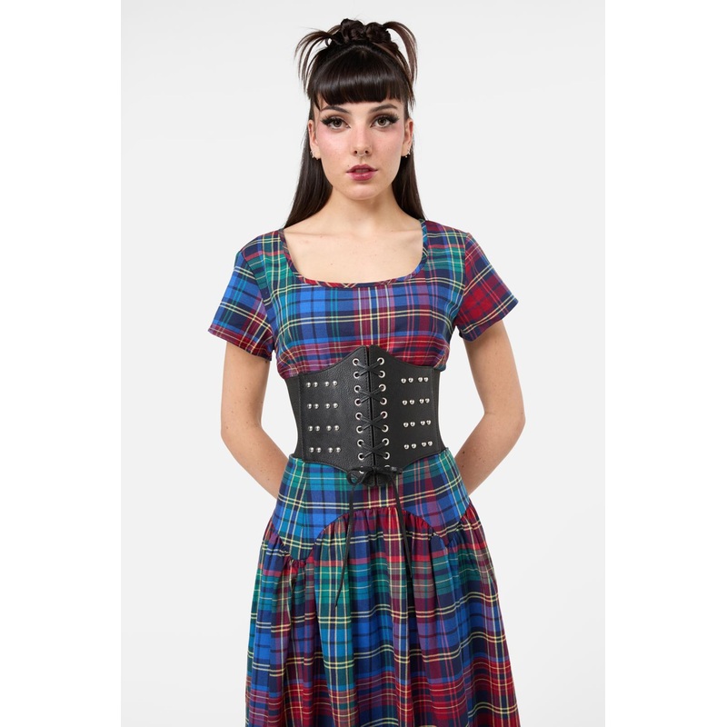 Small Stud Corset Belt- A cool, easy to style accessory- Corset waist belt- Vegan leather- Round studs- Eyelet and lace up front- Elastic backing with press stud closure- Available in black- Comes in sizes XS, S, M and LProduct Code: BWFZ066